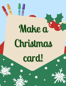 Upstairs in our non-fiction section, we have an area set up for kids and adults to make their own Christmas cards. This program will be set up for as long as we are open until December 25th!